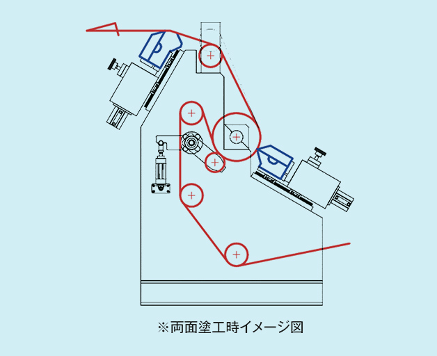 特殊ダイヘッドは両面同時塗工における裏面塗工用に開発されました。